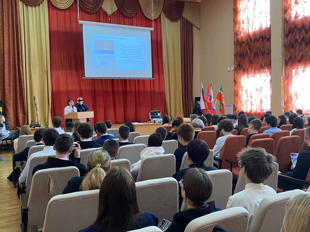 Встреча старшеклассников города с представителями Казанского филиала Российского государственного университета правосудия имени Лебедева /Өлкән сыйныф укучыларының Лебедев исемендәге Россия дәүләт гадел хөкем университетының Казан филиалы вәкилләре белән очрашуы