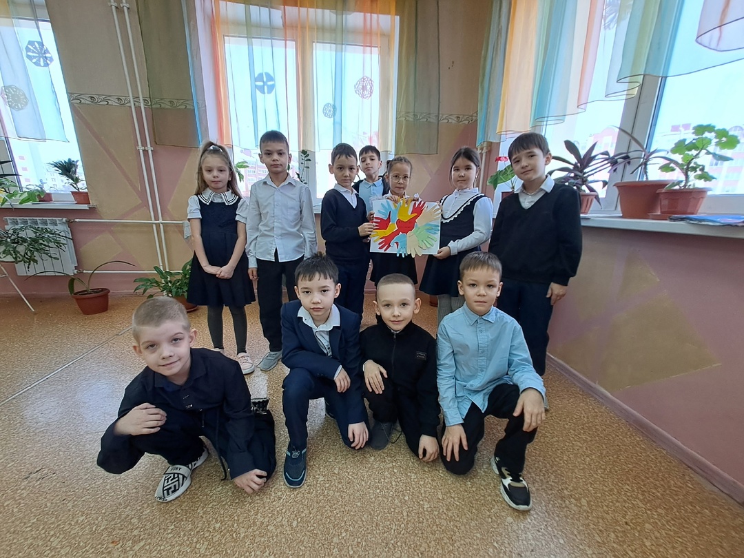 Бөркеткәй -ирекле кеше.1В класслы Бөркетләр «Орленок-доброволец»трегын өйрәнә башладылар. Дәрестә балалар волонтерның кем икәнен, нинди сыйфатларга ия булуын һәм нинди яхшы эшләр башкаруын белделәр. Шулай ук егетләр «яхшылык түгәрәге»ясадылар. Кулларын сындырдылар, кисеп алдылар, исемнәрен яздылар.