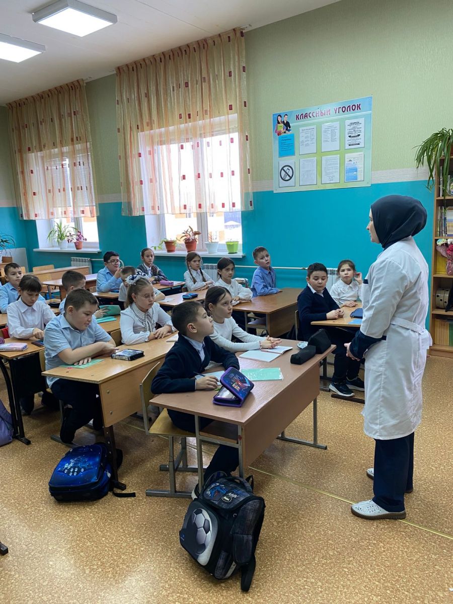 Сегодня фельдшер школы Хабибуллина Ф.Ф. провела в 3а классе беседу на тему: «Охрана зрения».В ходе беседы ребята узнали о мерах предотвращения распространенных проблем со зрением, таких как близорукость и усталость глаз. Фельдшер рассказала о правильном уходе за глазами, необходимости регулярных осмотров у офтальмолога и соблюдении гигиены зрения.Особое внимание было уделено важности правильного освещения рабочего места и ограничению времени, проводимого за экранами гаджетов. Ученики получили ценные советы по сохранению здоровья глаз, которые помогут им в будущем избегать неприятных последствий.