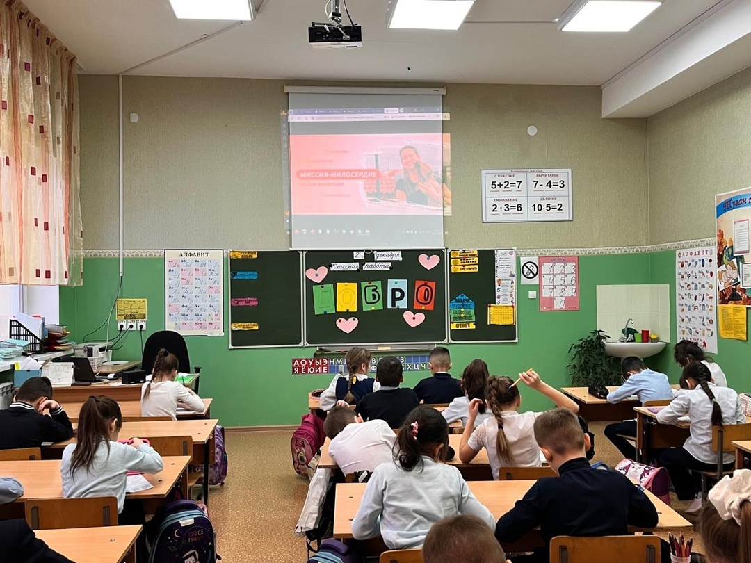 Дүшәмбе иртәсе мәктәптә традицион линейкадан, флагларны күтәрүдән һәм Россия Федерациясе һәм Татарстан Республикасы гимннарын башкарудан башланды.Узган атнага йомгак ясалды һәм алдагы уку көннәренә яңа максатлар куелды, төрле чараларда һәм олимпиадаларда катнашкан укучыларны грамота һәм дипломнар белән бүләкләделәр."Мөһим сөйләшүләр" циклының чираттагы дәресе узды "Миссия-шәфкать. Волонтер көненә" багышланган иде.