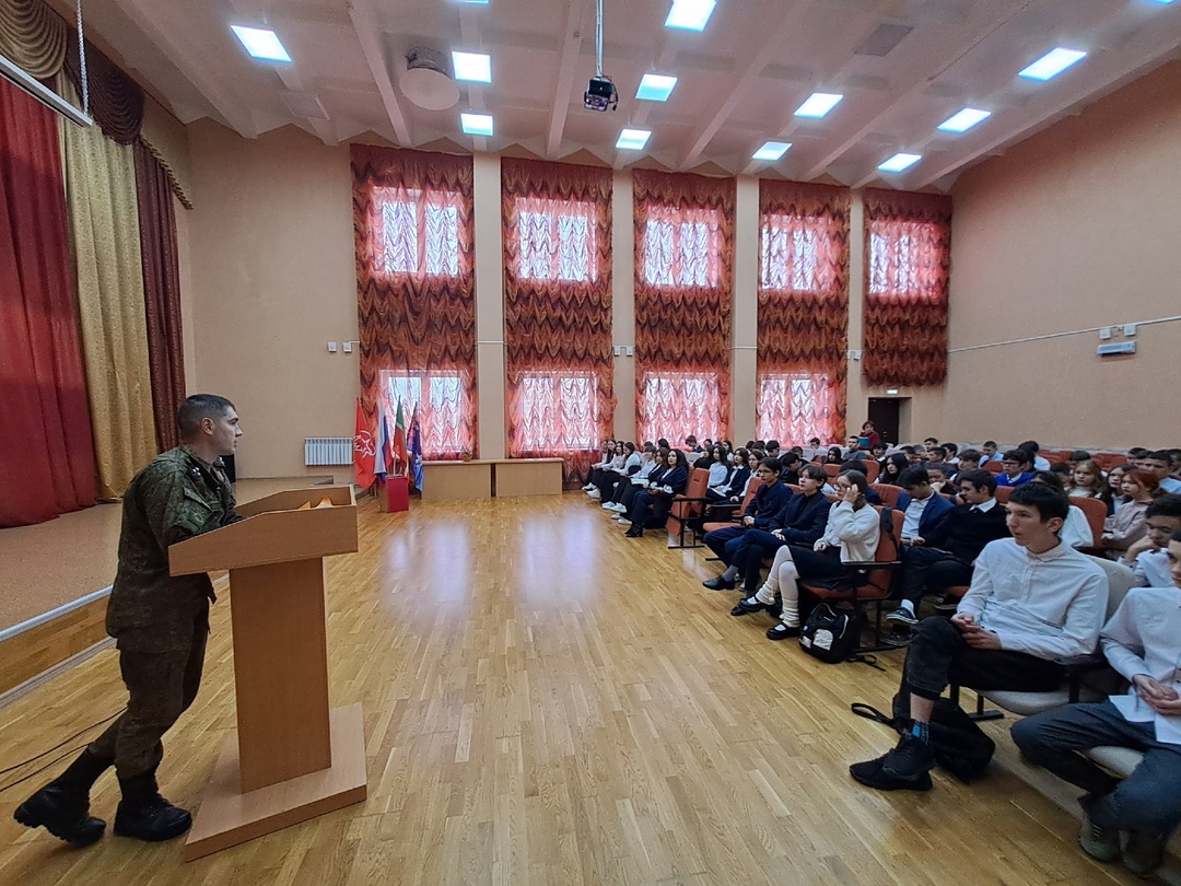 Ученики узнали о Вооруженных Силах Российской Федерации, что служба в армии — это не только долг, но и возможность получить качественное образование, развить лидерские качества и приобрести уникальный опыт.В ходе встречи были обсуждены различные военные образовательные учреждения Министерства обороны РФ и других силовых ведомств. Подробно остановились на правилах и особенностях предварительного медицинского и психологического отбора кандидатов, что вызвало живой интерес у слушателей.Һөнәри юнәлеш бирү кысаларында бүген безнең мәктәптә Әйдәп баручы белгеч-эксперт, өлкән лейтенант Р.Р Бәдретдинов белән очрашу узды. әңгәмәнең максаты 10 һәм 11 нче сыйныф укучыларының хәрби-һөнәри юнәлеш алуы булды, бу өлкән сыйныф укучыларына армиядә хезмәт итү һәм хәрби уку йортларында уку перспективалары турында күбрәк белергә мөмкинлек бирде. Укучылар Россия Федерациясе Кораллы Көчләре турында армиядә хезмәт итүнең бурыч кына түгел, ә сыйфатлы белем алу, лидерлык сыйфатларын үстерү һәм уникаль тәҗрибә туплау мөмкинлеге булуын белделәр.Очрашу барышында РФ Оборона министрлыгының һәм башка көч ведомстволарының төрле хәрби белем бирү учреждениеләре турында фикер алыштылар. Кандидатларны алдан медицина һәм психологик сайлап алу кагыйдәләренә һәм үзенчәлекләренә җентекләп тукталдык, бу тыңлаучыларда зур кызыксыну уятты.