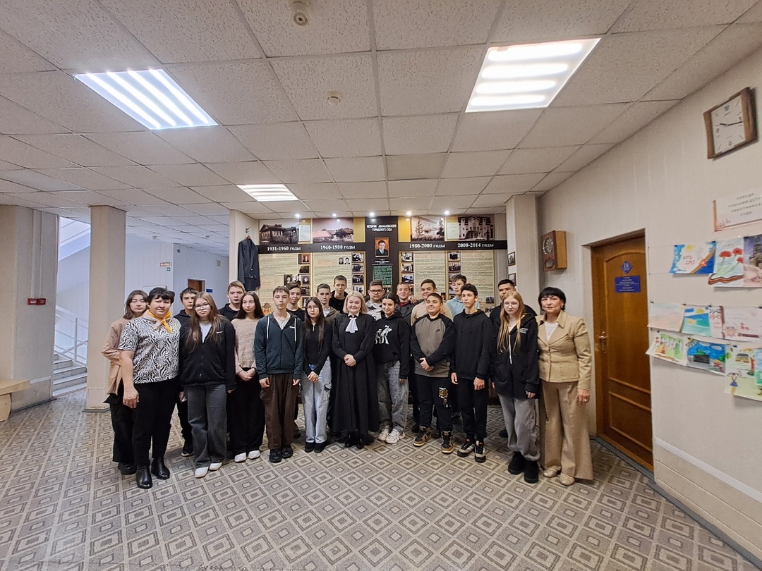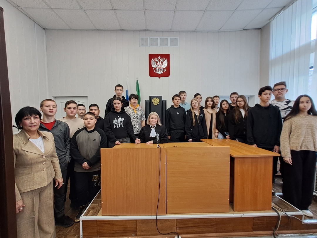 Сегодня учащиеся 9 классов с советником директора по воспитанию Р.Д. Ишмеевой посетили Дом правосудия. Цель экскурсии — повышение юридической грамотности и правового воспитания несовершеннолетних, формирование позитивного отношения к российской судебной системе, уважительного отношения к закону.Экскурсия началась с музея суда, где администратор суда Темирбулатова Альбина Раяновна, рассказала историю суда. Сопроводила ребят по зданию, рассказала о судах Азнакаевскогомуниципального района.Далее Газизова Ирина Николаевна, судья Азнакаевского городского суда провела для учащихся познавательную и профилактическую беседу о правонарушениях и преступлениях, совершаемых с участием несовершеннолетних и об их ответственности. Ребята активно задавали вопросы.Встреча получилась насыщенной и интересной. Наверняка ребятам будет, о чем поразмышлять, когда встанет вопрос о выборе будущей профессии.