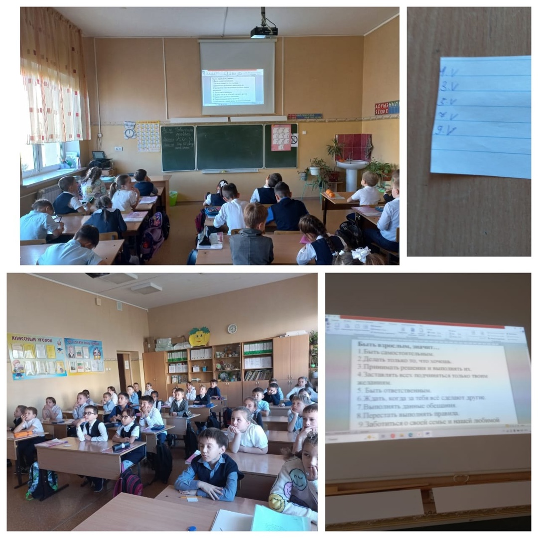 Сегодня состоялось внеурочное занятие «Разговоры о важном» на тему «Что значит быть взрослым?».Учашиеся школы узнали, что взрослость не определяется только возрастными рамками. Быть взрослым – это нести ответственность за свои решения, действия и их последствия, за свою семью и свою страну.