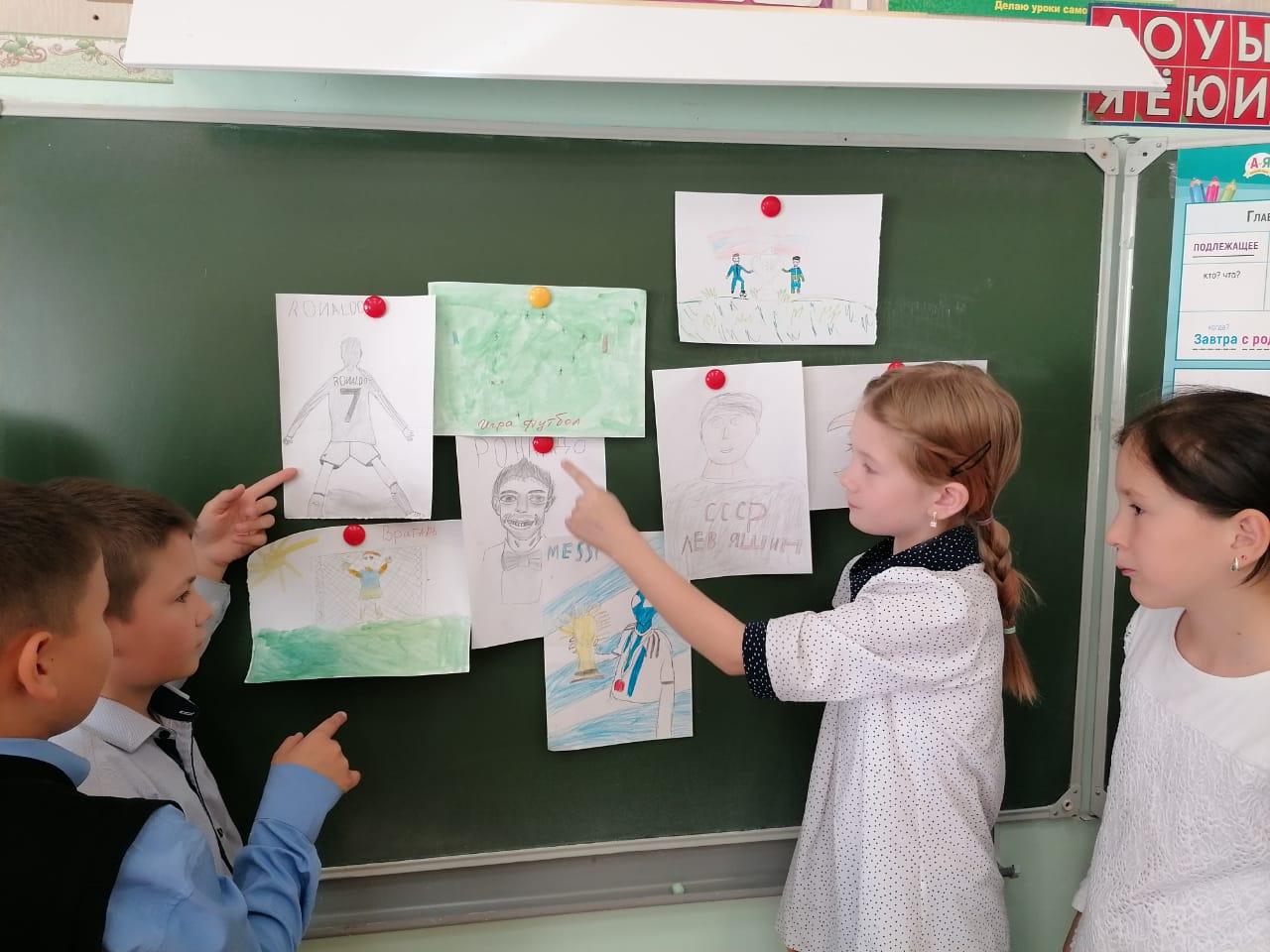 В рамках проекта "Футбол в школе" учитель физкультуры Алтынбаева О.Н провела соревнование футболу"Классный кубок". По итогам турнира победителем соревнований стала команда 6б, 2 место-6а,3 место 6в. А так же провела "Творческий конкурс",дети рисовали известных футболистов.