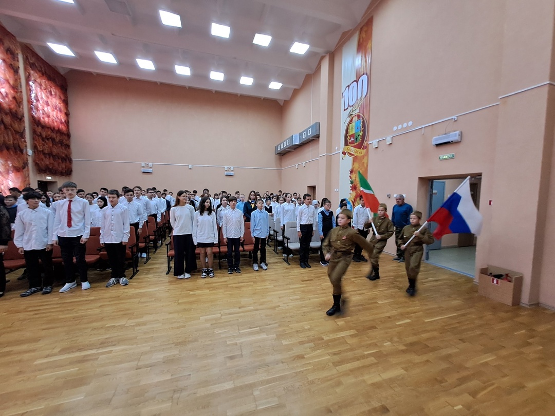 Новая учебная неделя традиционно началась с поднятия флагов и исполнения гимнов Российской Федерации и Республики Татарстан.В 1-11 классах прошли внеурочные занятия «Разговоры о важном» на тему «Легенды о России».Обучающиеся вместе с педагогами обсудили, как в сознании людей формируется образ России. Они узнали, какую роль в этом процессе играет фольклор, и поговорили о любви к своей стране, ее истории и культуре.В ходе занятия ребята посмотрели тематические видеоролики, вспомнили героев устного народного творчества, нарисовали наиболее известные символы фольклора и отгадали загадки.