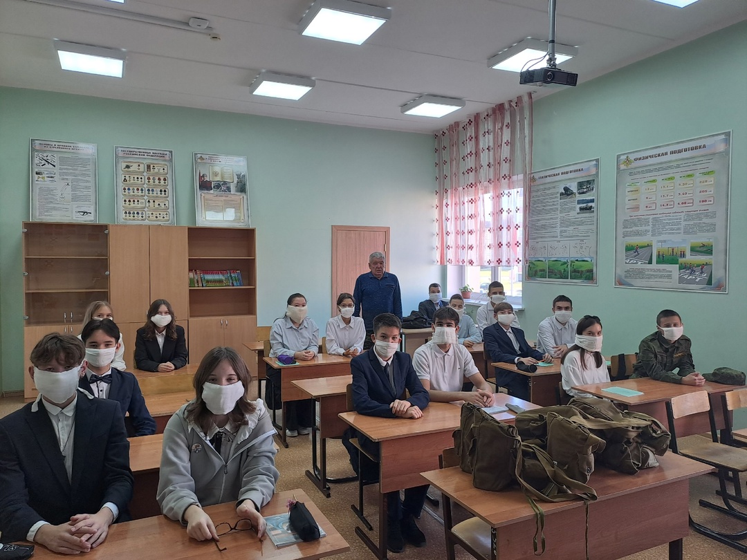 Ватанны саклау һәм иминлек нигезләре укытучысы Усманов А.Ш. Гражданнар оборонасы көненә багышланган Бөтенроссия ачык дәресен Азнакай муниципаль районы башкарма комитеты урынбасары Ханнанов Р. Р катнашында, 9Б сыйныфында "Индивидуаль саклану чаралары" темасына дәрес үткәрде.