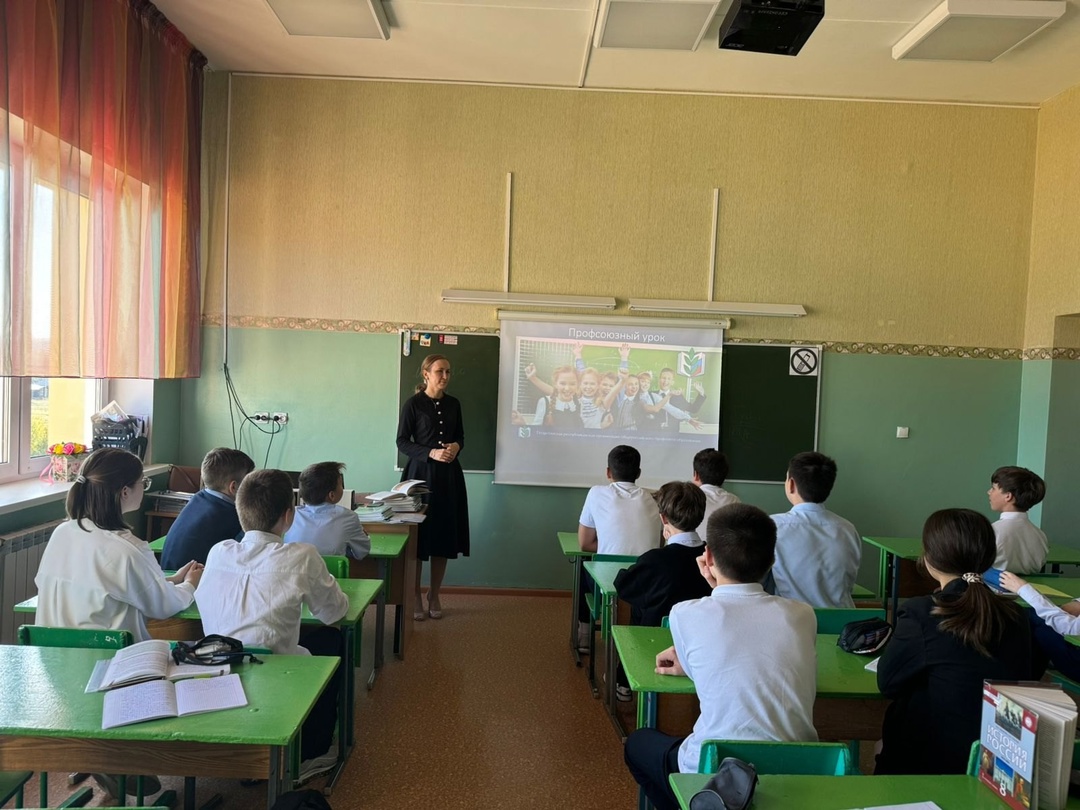 В рамках профсоюзной недели учитель истории Ризванова И. А. в 8а класссе провела профсоюзный урок « Российские профсоюзы: история и современность.» Ребята ознакомились с историей профсоюзного движения, проинформировались о современном этапе развития профсоюзного движения, трудовых правах и гарантиях работников.