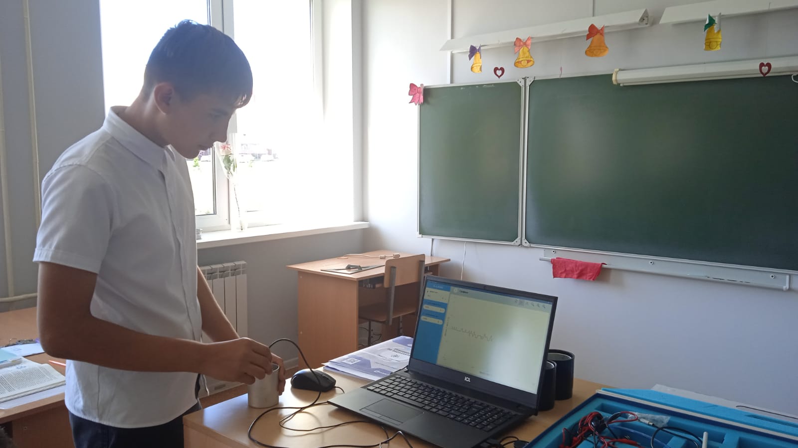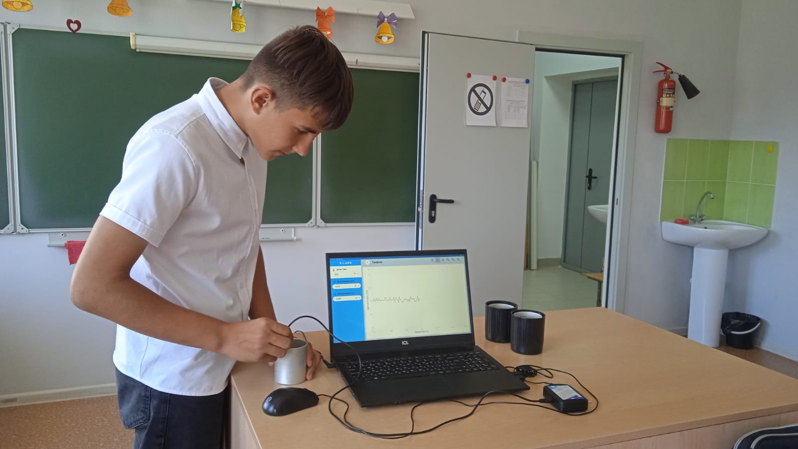 "Үсеш ноктасы" үзәге базасында 8 нче сыйныф укучылары белән физика дәресендә түбәндәге тикшеренү үткәрелде: "Сыеклык термометры һәм температура датчигы ярдәмендә температураны үлчәү". Максат: сыеклык термометры күрсәткечләрен бер үк шартларда чагыштыру.