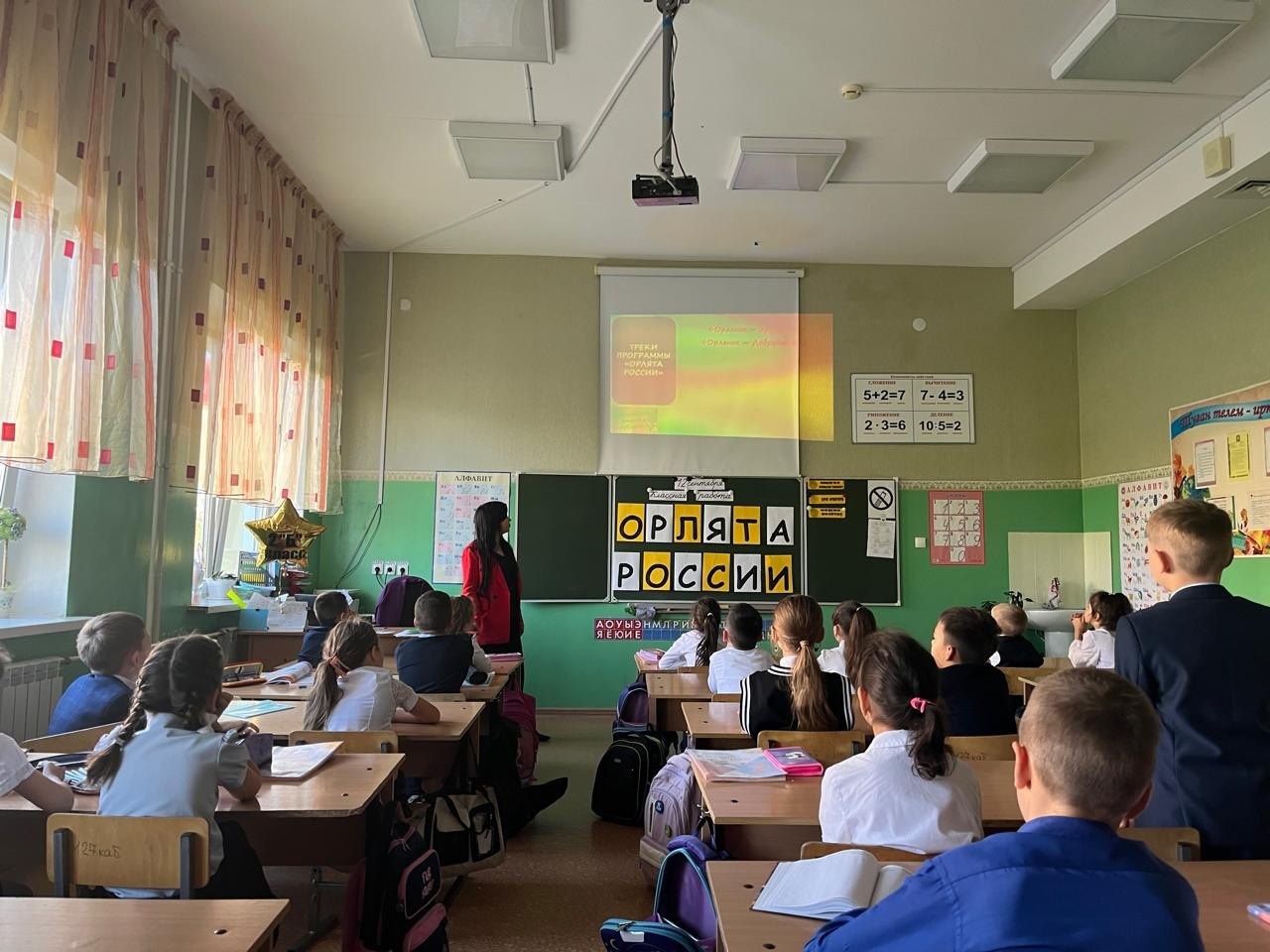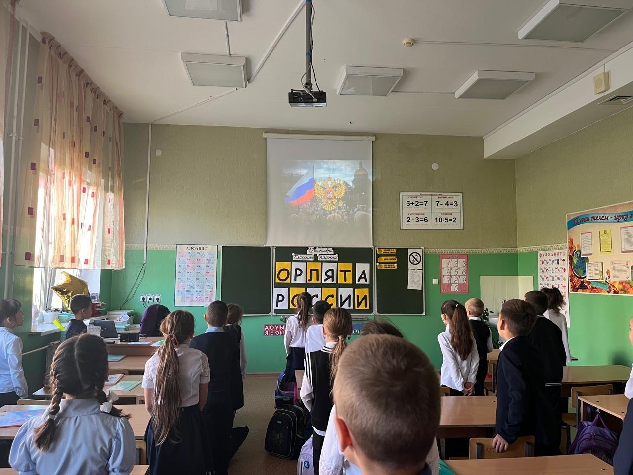 «Россия бөркете» дәрестән тыш эшчәнлеге кысаларында, 1-4 класс укучылары сыйныф җитәкчеләре белән гимнын өйрәнделәр, треклар белән таныштылар, бөркеткәйләр почмагын ясадылар.