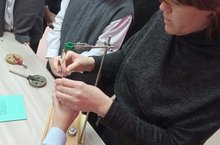 7 нче сыйныф укучылары "Мавыктыргыч физика" түгәрәк җитәкчесе Садыйкова Ольга Алексеевна белән өстәмә белем бирү дәресләрендә «Үсеш ноктасы» җиһазларын кулланып практик эш башкардылар, анда алар төрле блокларны һәм аларны куллануны карадылар