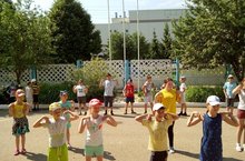Пришкольный лагерь работает в полном режиме. Утро начинается с веселой зарядки! Целый день ребята заняты в различных районных и пришкольных мероприятиях.