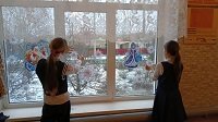 В школе полным ходом идет подготовка к встрече Нового года. Учащеся делают снежинки, разрисовывают окна в кабинетах .