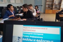 Сегодня в школе прошли мероприятия по предмету информатика под руководством учителя Регины Хуснутдиновой в рамках Недели математики и информатики. Ученики 8 класса создавали авторские проекты на тему: «Графические информационные модели». Были представлены семейные деревья, системы школьного образования, модели торговли продуктами и др. Викторина на тему: «Файлы и файловая структура» организована в седьмом классе. Команды отвечали на вопросы, решали практические задачи, составляли и кодировали полный путь файлов. Дети из 9 класса прошли практикум в среде учебного исполнителя Кумир, учились программировать перемещения Робота.