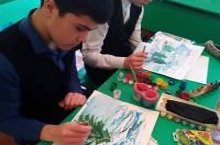 Школьники готовятся к новогоднему конкурсу рисунков .