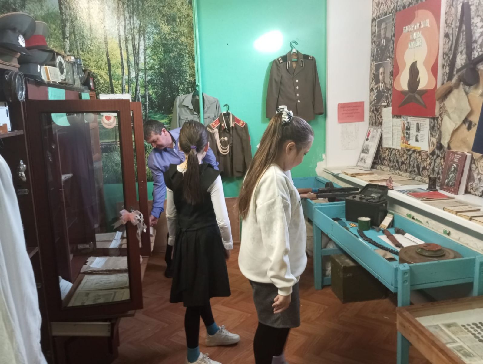 Посещение школьного музея учениками начальных классов. Экскурсию ведёт учитель истории, ОБЗР и руководитель музея - Латыпов М. З.