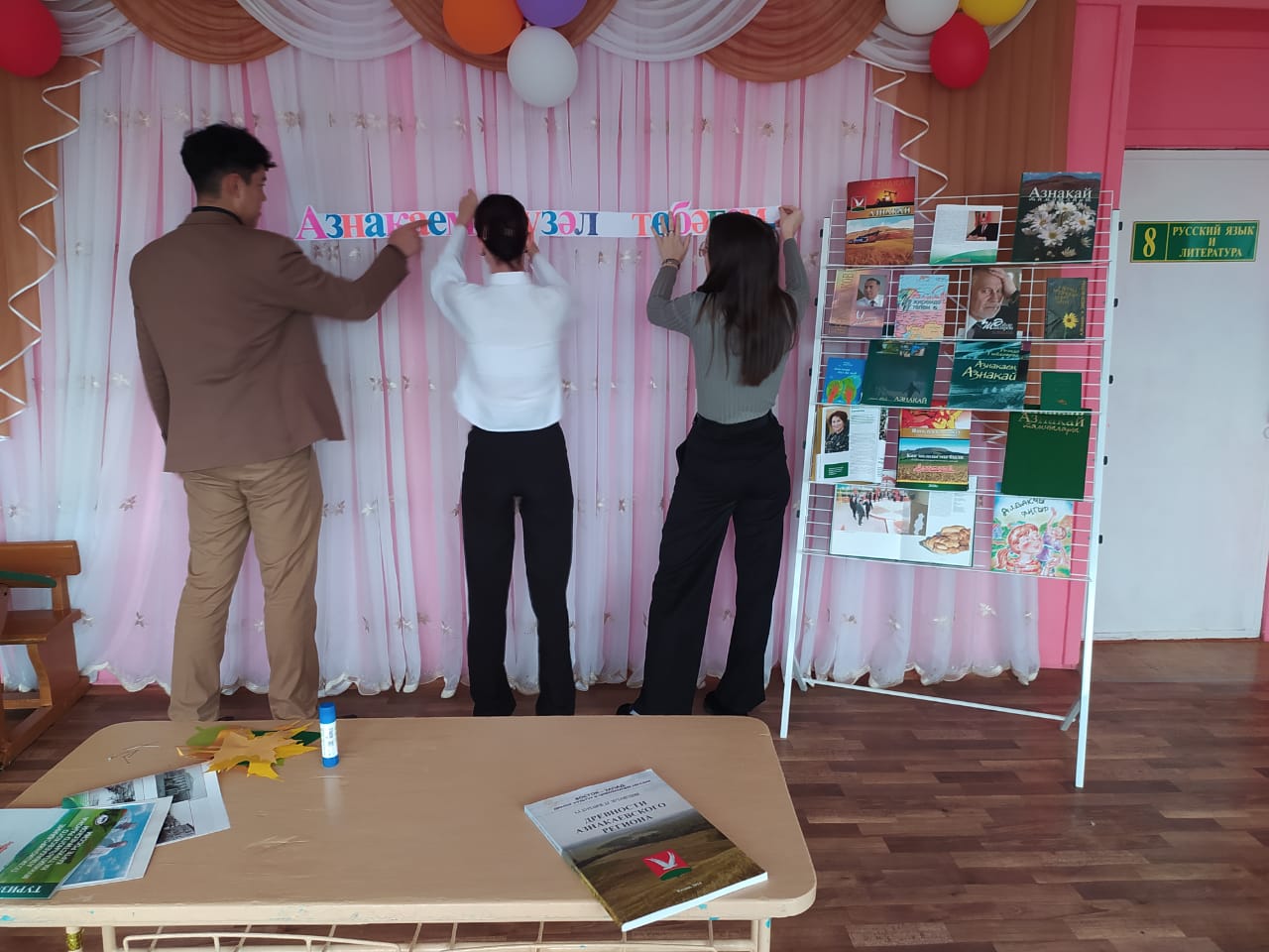 Китапханә атналыгы кысаларында 24 нче октябрь көнне югары сыйныф укучылары "Азнакаем-гүзәл төбәгем." исемле выставка ясадылар һәм башлангыч сыйныф укучыларына Азнакай төбәге турында сөйләделәр.