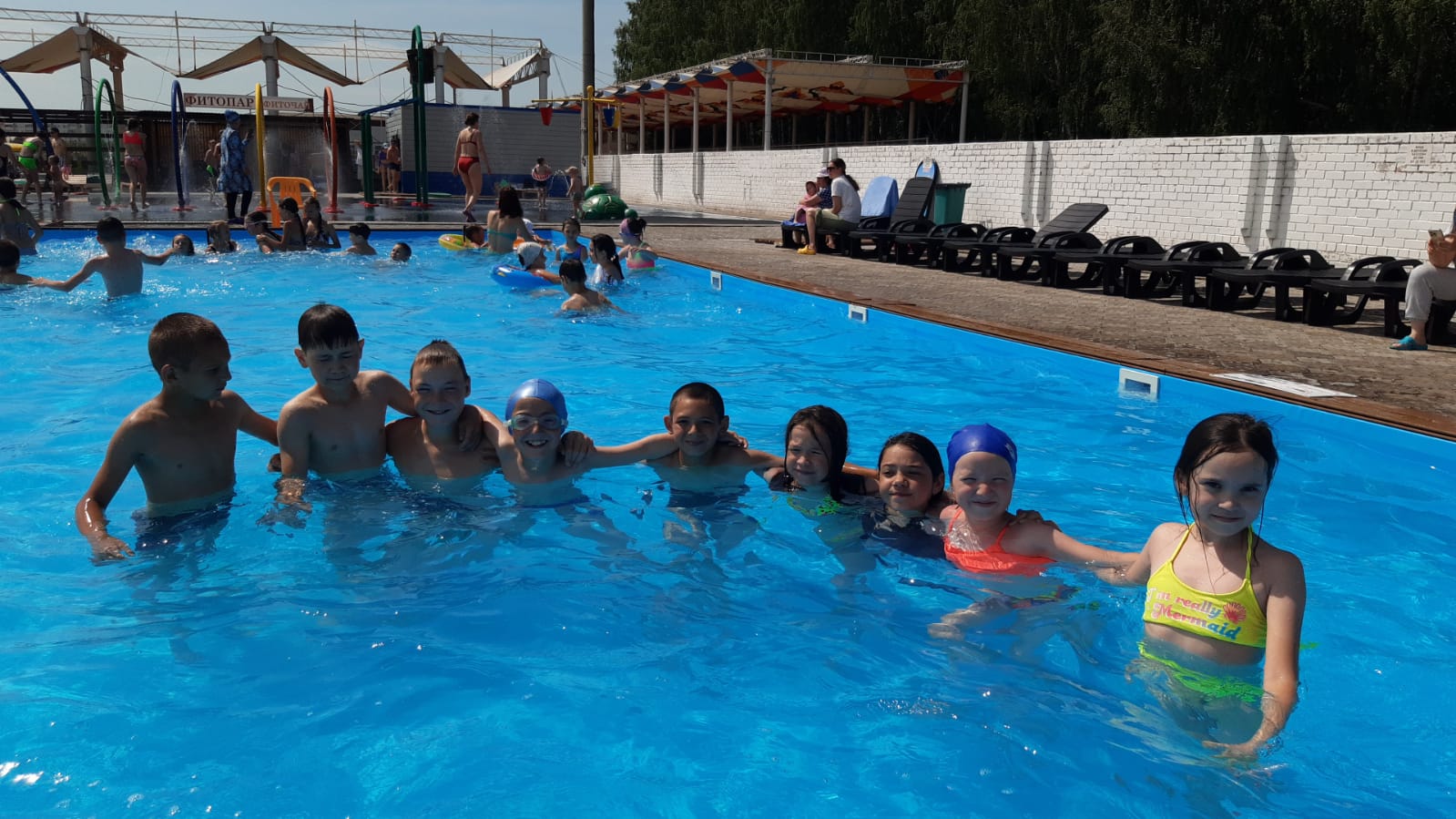 Сегодня дети пришкольного лагеря посетили открытый бассейн.