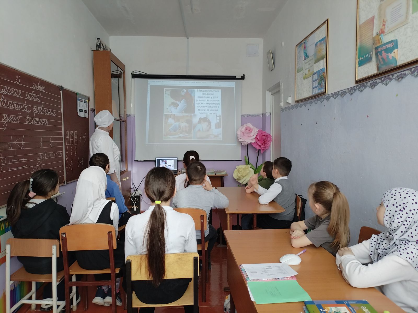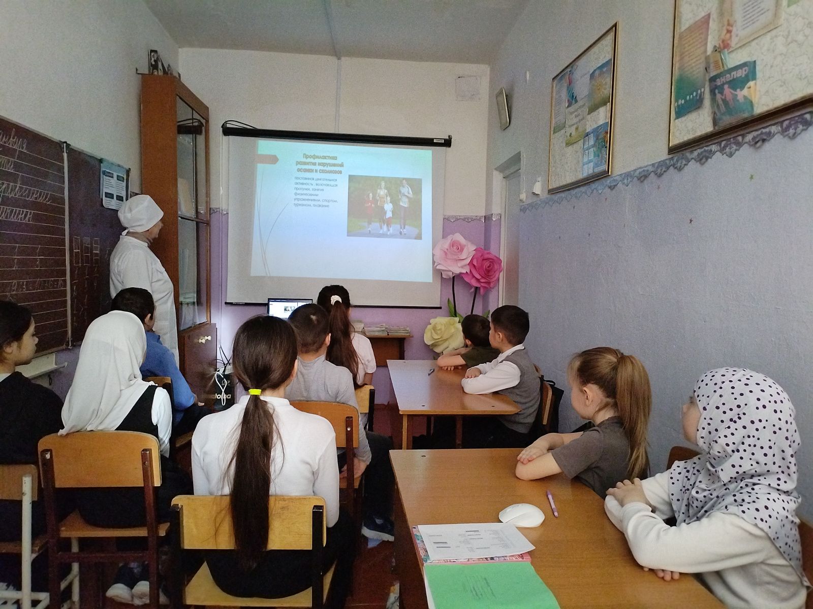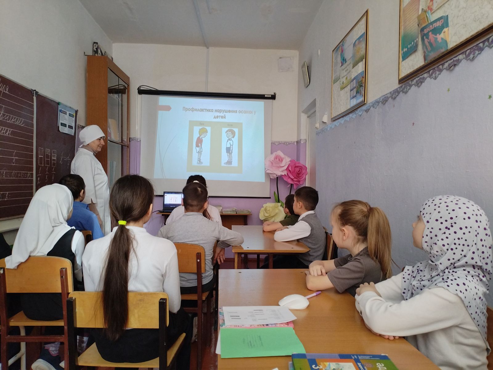 Сегодня фельдшер села Чубар-Абдуллово Юсупова Х.Х., провела беседу посвящённую актуальной теме здоровья наших учеников — нарушению осанки у детей.