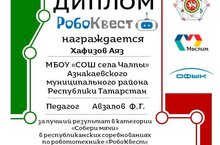 Хафизов Аяз -Призер конкурса "РоботоКвест", педагог Авзалов Ф.Г.