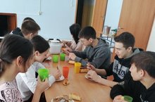 Поварлар укучыларны тәмле рыйзыклар белән сыйлыйлар. Рәхмәт аларга.