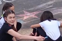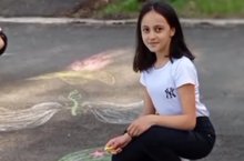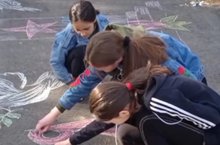 Дети рисуют добрые рисунки на асфальте