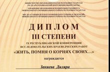 Республиканский конкурс "Жить помня о корнях своих": Наши обучающиеся -Закиева Диляра и Сайфутдинова Тансылу- призеры. Поздравляем! Молодцы! Руководители- Закиева Э.Ф., Ибрагимова Г.Г.