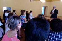 Мәктәптә ата-аналар җыелышы. Мәктәп директоры ата- аналарны алда торган планнар белән таныштырды.