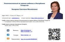 Хөрмәтле ата-аналар, мөһим мәгълүмат! Сезгә Татарстан Республикасында Бала хокуклары буенча яңа билгеләнгән вәкаләтле вәкил - Захарова СВЕТЛАНА Михайловнаны тәкъдим итәбез.