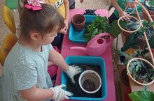 Не можем представить свою жизнь без растений. А если эти растения создают настроение праздниками, красоты, прекрасного настроения... Эти растения цветы-петуньи и тюльпаны. Воспитанники подготовительных групп разделились на две бригады, каждая выполняла свое задание - пересадить петуньи с улицы в группе и высадить луковицы тюльпанов на участке. Работа очень увлекла детей. Теперь будем ждать появления цветов петунии и ухаживать, а весной нас порадуют тюльпаны.