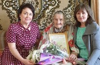 Вручение ветерану ДОУ,труженику тыла Галиевой С.Д. юбилейной медали.