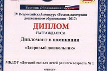 Наш детский сад стал дипломантом в номинации «Здоровый дошкольник» на IV Всероссийском конкурсе «Восемь жемчужин дошкольного образования России – 2017»