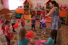 Музыкальный руководитеь Закиева Р.Ф. ведет кружок " Ритмическая мозаика"