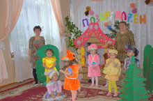 На фото первая младшая группа №1 со сказкой «Колобок», воспитатели Шарипова Г.И., Ганиева А.К.