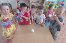 С целью знакомства малышей с понятием "семья" через русское народное творчество, воспитания любви к членам семьи разыгрывали кукольный театр "Курочка Ряба"