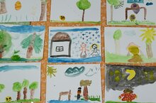 В рамках тематической недели "Путешествие в мир сказок" воспитанники младшей группы нарисовали героев сказки "Колобок"