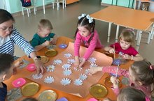 Ромашка - это самый известный и любимый цветок в России. Белые лепесточки собрались вокруг желтой серединки как дружная семья. Потому в Международный День Семьи ребята младшей группы сделали такое ромашковое поле. Вы только посмотрите, какое чудо у них получилось!