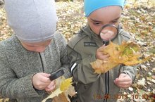 Исследование строения осеннего листа с помощью лупы 14.09.2015