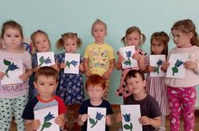 Икенче кечкенәләр төркеме балалары кыңгырау чәчәген кисеп ябыштырдылар. Үсемлекнең өлешләрен өйрәнделәр, аны өзәргә ярамаганлыгы турында сөйләштеләр, кисеп-ябыштыру күнекмәләрен ныгыттылар. Тәрбияче: Бәдертдинова Л.Җ.