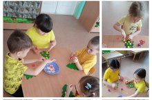 Уртанчылар төркемендә кисеп-ябыштыру шөгыле. Тема: "Чыршыга төймәләр" . Шөгыльнең максаты: түгәрәк һәм овал формалар кисәргә, аларны ябыштырырга өйрәнү.