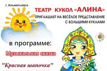 Уважаемые родители! 8 августа в 9.00 часов Театр "Алина " приглашает детей на веселое представление с большими куклами. В программе: музыкальная сказка "Красная Шапочка"