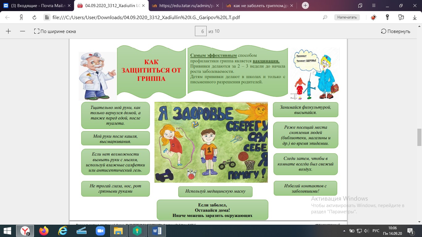 Видеоролик https://www.youtube.com/watch?time_continue=26&v=QhVmdwXINcM&feature=emb_logo) по профилактике гриппа и ОРВИ
