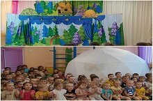 Сегодня театр кукол “Алина” показывала детям веселую и поучительную театрализованную постановку про утенка Кряксика и гусенка Бяксика (из серии сказок детям о дружбе).