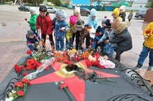 Мәктәпкәчә яшьтәге зурлар төркеме балалары "Мәңгелек утка" чәчәкләр кую өчен бардылар