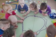 Надо бусы из арбузов.4нче кечкенәләр төркемендә (Сафина Л.Р., Мутигуллина А.Н.) балалар төрле - төрле төймәләр ярдәмендә бармакларын хәрәкәтләндерәләр. Тәрбияче апалары төймәләрне төрле табигать материалларыннан да ясыйлар.