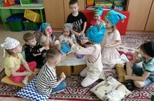 "Үзенчәлекле бала" төркемендә (тәрбияче: Хәкимова Л.А.) ата - аналар белән берлектә "Яулык бизибез"уен тренингы узды. Аннан соң укытучы - дефектолог (Г. Э. Нәгыймуллина) "Күңелле тел"логопед массажының мастер-классын күрсәтте.