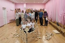 "Татнефть һәм балачак" проекты. 3 нче кече төркем әти-әниләренең ике командасы (тәрбиячеләре: Харрасова д.г., Аминева л. х.) "Бабашка" кубикларын кулланып "Хыялым корабы"уен тренингын үткәрәләр. Әлбәттә, дуслык җиңде. Балаларның шатлыгы, ата-аналарның танып белү уеннары педагогларның, балаларның, ата-аналарның дуслыгын тагын да ныгыта. Бик яхшы!!!