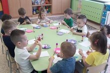 5нче урта төркем балалары (тәрбиячеләре: Сәйфетдинова А.Р., Шакирова Ф.С.) кәгазьдән уенчыклар ясарга бик яраталар. Бүген алар төрле төстәге шарлар һәм туплар кисеп алдылар.