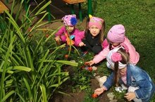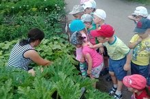 Бакчада балалар үзләре үстергән ташкабакларны күзәтәләр.