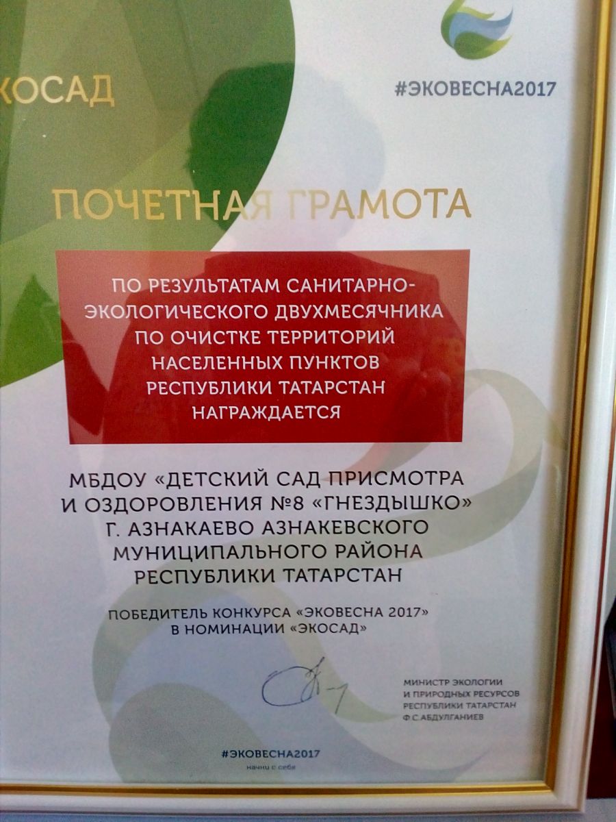 Почетная грамота Министерства экологии и природных ресурсов РТ.
