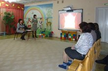 Рус теле тәрбиячесе Гайсина З.Г. мәктәпкә әзерлек төркеме балалары белән тел өйрәтүдә дидактик уеннарның кулланышын мастер - класста күрсәтте.Шулай ук балаларга ике дәүләт телен өйрәтү өчен дидактик уеннар күргәзмәсе оештырылды.
